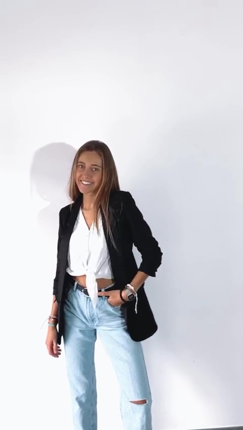 No estem acostumats/ades a veure pel carrer la combinació d’uns mom jeans i una blazer. No obstant això, volem ensenyar-vos que pot ser un look ideal si a sota de l’americana posem una camisa o una brusa lligada amb un nus.
